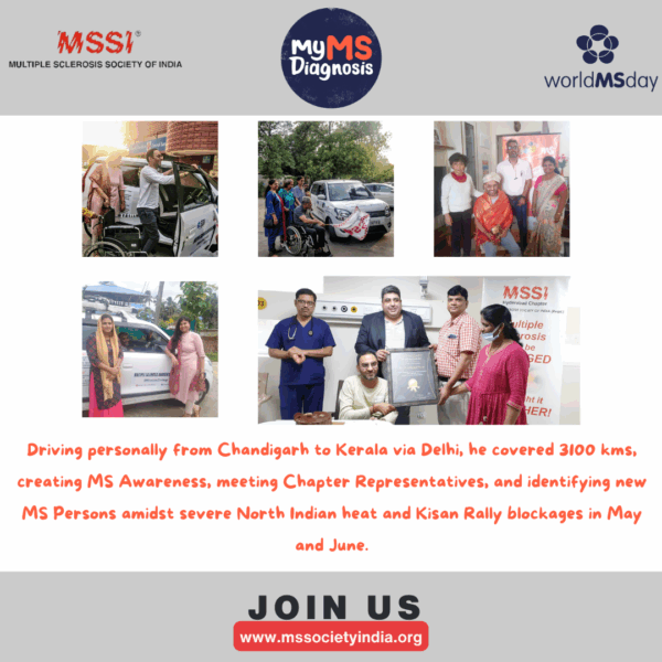 I decided to do something big to raise awareness about MS. I drove all the way across India. from Chandigarh to Kerala, meeting people along the way and sharing my story. Even though it was tough with the hot weather and roadblocks, I never gave up.